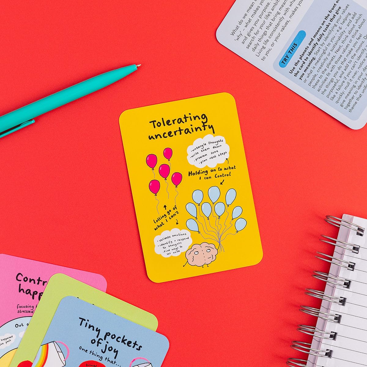 Either read them at random, using the cards to pay attention to your inner thoughts and feelings, or focus on specific cards that you identify with - no matter your approach these cards will allow you to better understand how your mind works, and help you develop positive coping strategies.